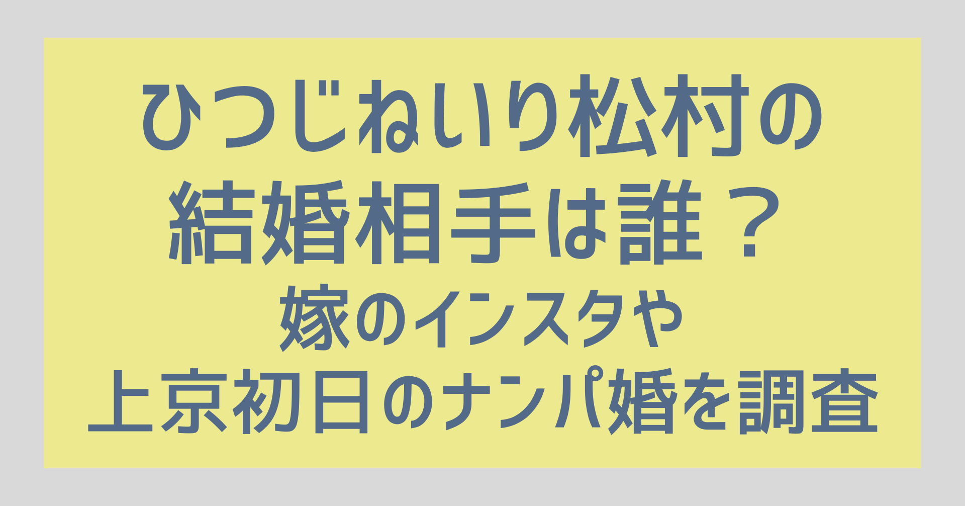 ひつじねいり松村の結婚相手は誰?嫁のインスタや上京初日...