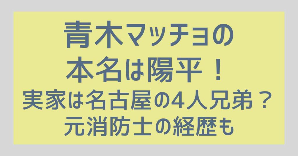 青木マッチョさんの本名は「青木陽平」さんといい、その名前にはご両親の優しさがあふれる願いが込められています。