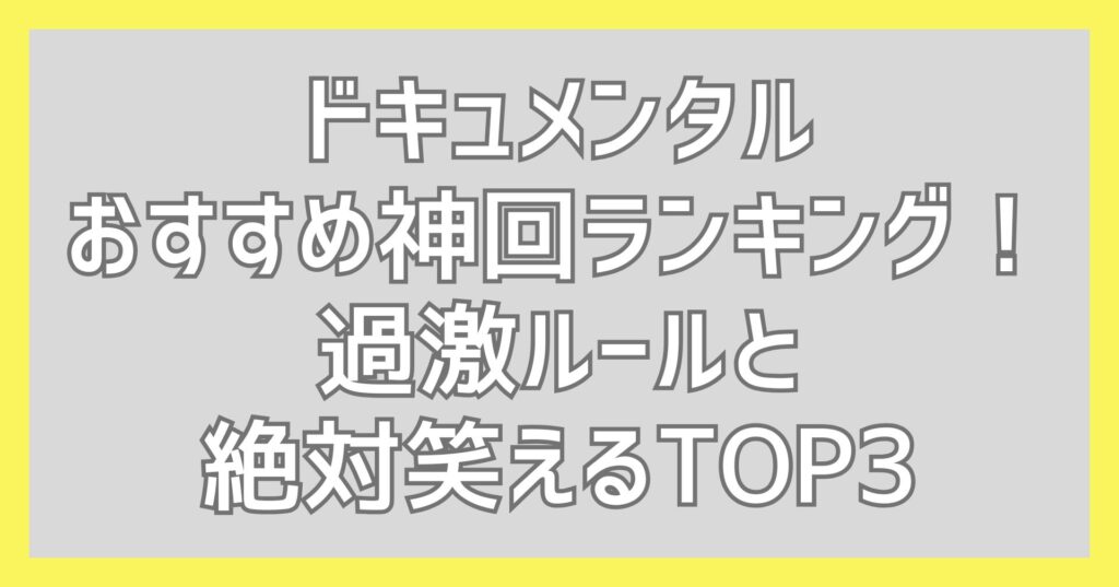 今回は、松本人志プレゼンツ『ドキュメンタル』の魅力やルール、そして絶対に外さないおすすめの神回について解説しました。
