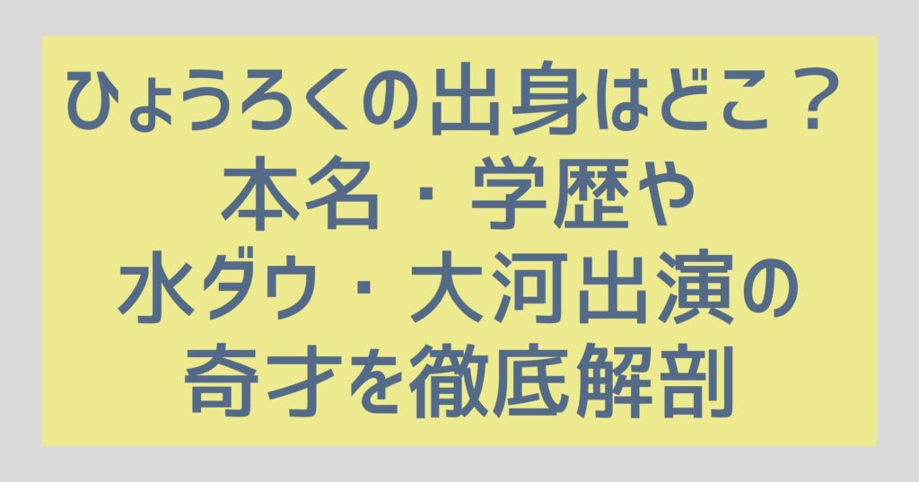 ひょうろくの出身はどこ?本名・学歴や水ダウ・大河出演の奇才を徹底解剖