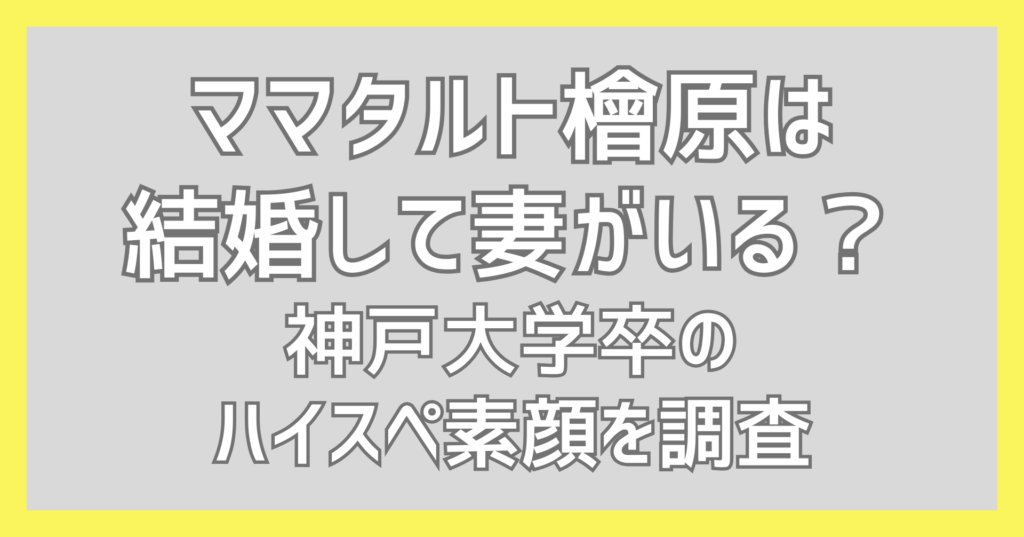 今回は、ママタルト檜原洋平さんの結婚の噂や恋愛事情について徹底的に調査しました。