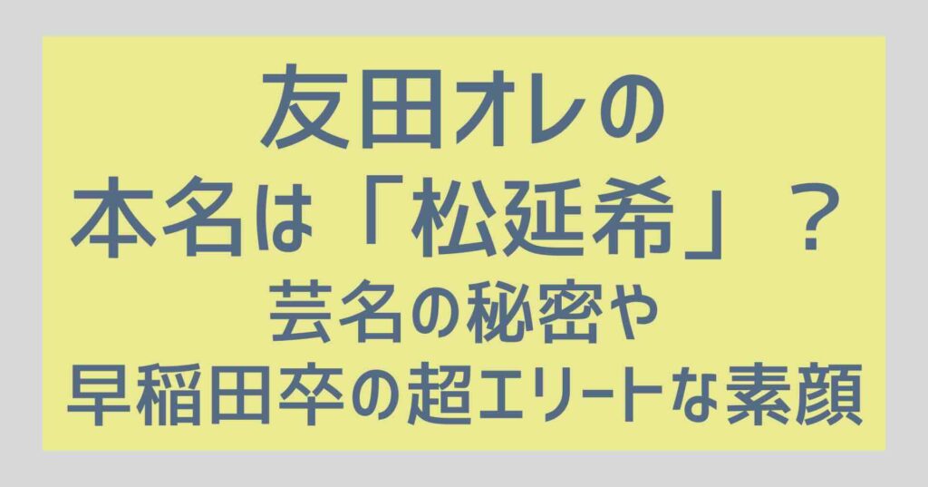 芸名の「友田」は大学時代の恩師の名前から、「オレ」は言葉の響きから取られたという、非常にセンスの光る由来があります。
