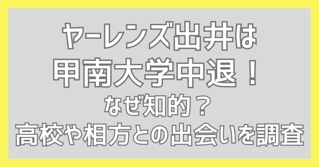 大学以前の学歴は?ヤーレンズ出井の出身高校や中学を深掘り