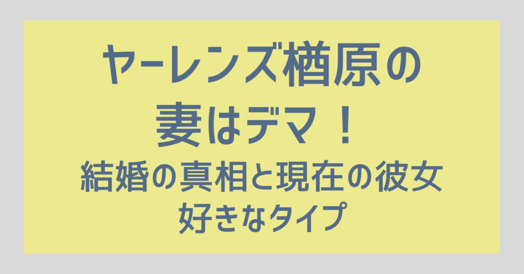 • ヤーレンズ楢原は現在「独身」という決定的な真実